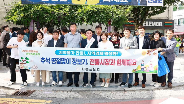 군의원들과 의회사무과 직원들은 장터를 돌며 화순사랑 상품권을 사용해 추석 물품 등을 구입하고, 명절 선물과 제수용품은 전통시장을 이용해 줄 것을 홍보했다.