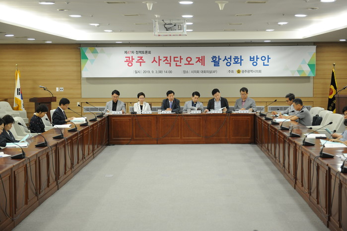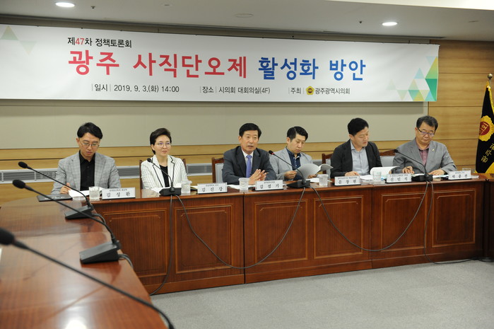 [광주=세계타임즈 손권일 기자] 2019년 9월 3일 광주광역시의회 대회의실에서 ‘광주 사직단오제 활성화 방안 마련을 위한 토론회’가 김점기 의원 주최로 개최되었다.
