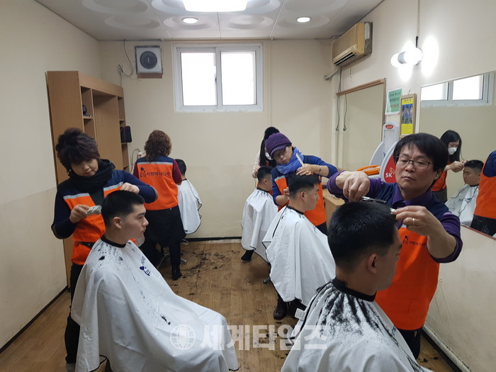 [대전=세계타임즈 이장성 기자] 6천명의 회원들이 활동하고 있는 SNS 봉사단체인 사랑의 사다리 밴드(리더 이정제)는 18일 오전10시~오후1시 육군 제32사단대덕대대(대대장 박종림)에서 군 장병들에게 미용봉사로 따뜻한 이웃사랑을 전했다.