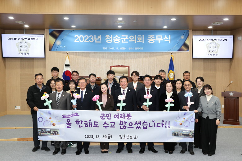 [세계타임즈=청송군 한윤석 기자] 청송군의회는 12월 29일 본회의실에서 ‘2023년 청송군의회 종무식’을 개최했다고 밝혔다.