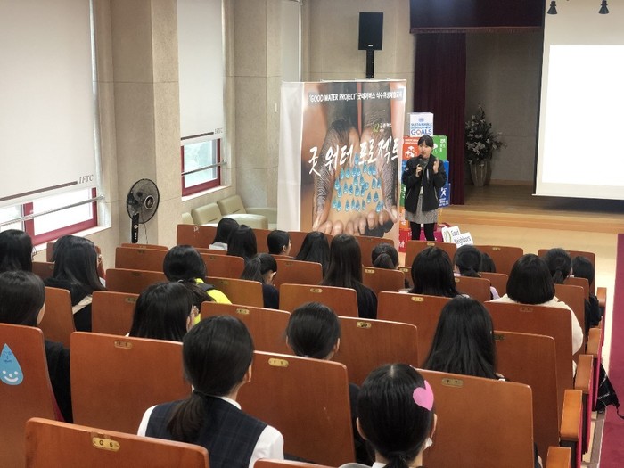 참여형 세계시민교육인 굿워터 프로젝트 체험교육은 「수인성 질병과 적정기술(Life Straw)」, 「식수위생시설 부족과 적정기술(Hippo Roller)」, 「물부족 인식과 일상 속 청소년NGO활동가」로 구성되어 있으며 학생들이 물의 소중함을 알고 전 세계의 다양한 식수문제를 체험하며 대안을 토론하는 활동형 교육이다.