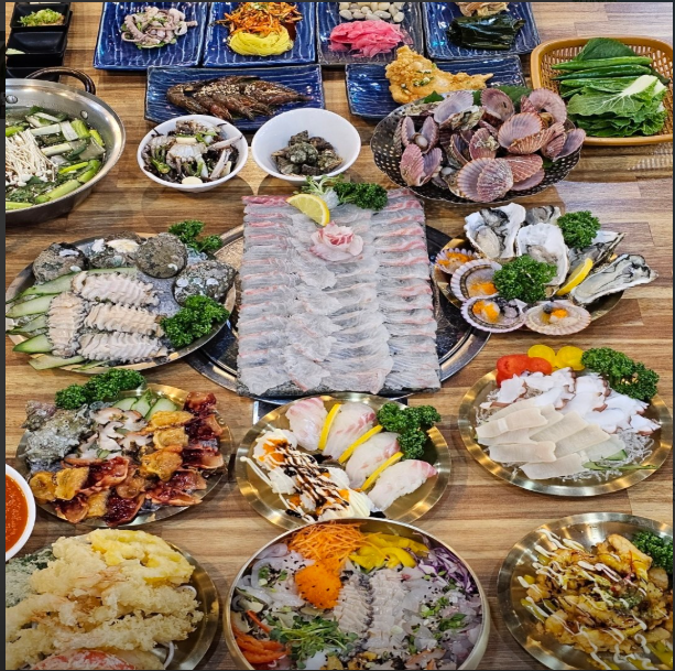 이곳 어방가는 미식가들이 사전에 미리 예약을 해두면 음식이 빠르게 나온다는 이점이 있다. 싱싱한 횟감을 시작으로 전복 찜 께장. 멍게 생선구이등 음식의 가짓수가 너무 많다 보니 상다리가 휘어지는 느낌이 든다.