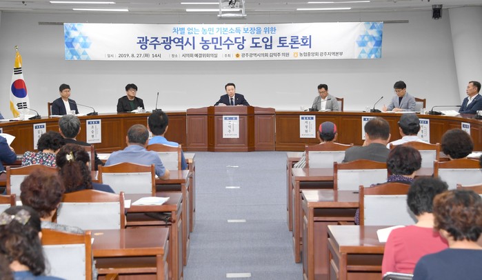 27일 광주시의회 회의실에서 열린 농민수당 토론회에 참석한 광주지역 농업인들은 광주와 전남은 생활권이 같은 농촌이라며 상대적 박탈감을 받지 않도록 내년부터 농민수당을 반드시 지급할 것을 촉구했다.
