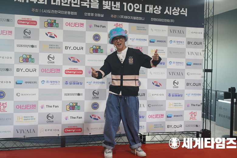 이날 포토월 행사에는 문화·예술·방송 분야의 주요 인사들이 참석해 자리를 빛낸 가운데 가수'팝핀현준'이 포즈를 취하고 있다.