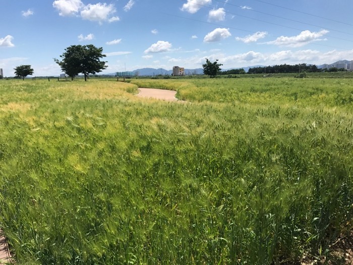 [경산시=세계타임즈 김승일 기자] 지난 2015년 조성 이래 하양읍은 물론 경산시의 대표적인 사진촬영 명소이자 나들이 공간으로 자리매김해온 금호강변 청보리·유채꽃 단지가 초록과 노랑의 물결로 장관을 이루어 지나가는 많은 이들의 시선을 붙잡고 있다.