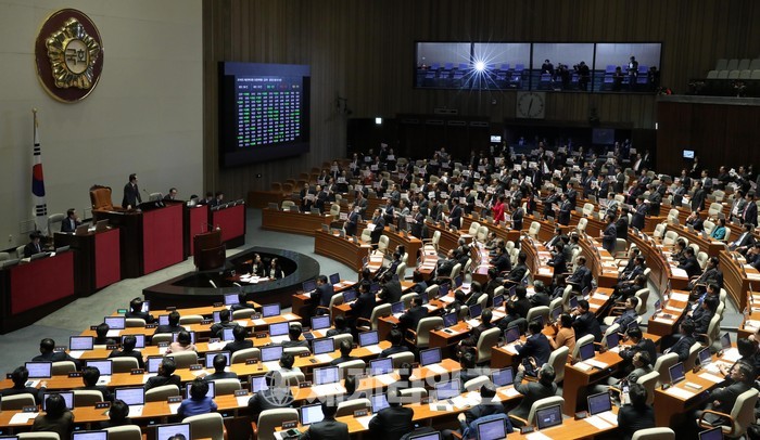 국회는 5일 본회의를 열어 정부가 제출한 내년도 예산안 총 지출 규모 429조원에서 1375억원 순삭감한 428조8626억원, 총 수입은 정부안 447.1조원 대비 0.1조원 늘어난 447.2조원 규모의 2018년도 예산안을 통과시켰다.