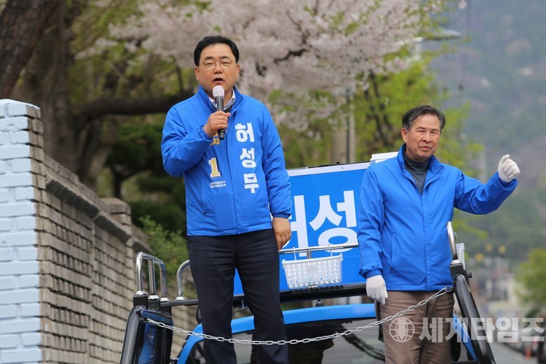 [세계타임즈 = 이판석 기자] 4.10총선이 나흘 앞으로 다가온 가운데 주말 유세전이 한창인 가운데 더불어민주당 허성무 후보가 6일 오후 창원시 성산구 남양장을 찾아 유세를 펼쳤다