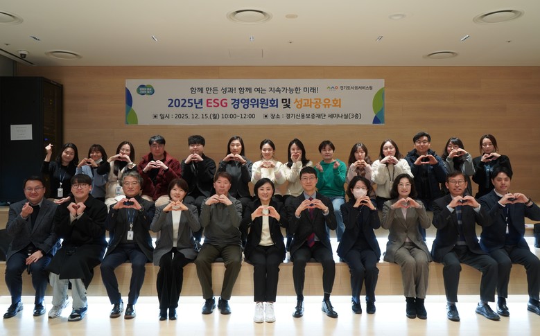 | ▲2025년 ESG 성과공유회 단체사진을 촬영 중이다.(사진=경기도사회서비스원) |