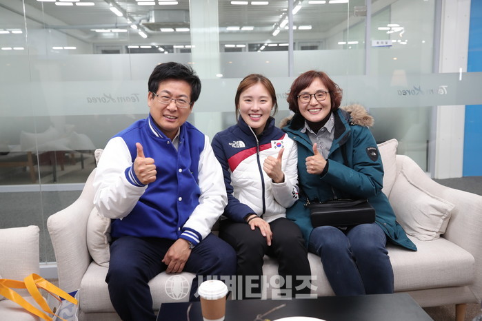 20일 강릉아이스아레나에서 열린 김아랑 선수 경기에 고양시가 응원에 나섰다. 김아랑 선수는 고양시청 소속. 지난 달 9일 입단했다. 이날 김아랑 선수가 속한 쇼트트랙 여자 대표팀은 3,000m 계주 결승에서 가장 먼저 결승선을 통과하며 응원에 보답했다.