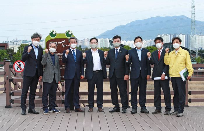 먼저, 지난 16일(금)에는 금호강 하중도와 달성습지 등 수변공간 개발현장을 방문하여 금호강 하중도 명소화 사업 및 달성습지 탐방나루 조성사업의 추진현황에 대해 보고받고 현장을 점검했다.