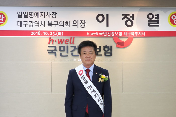 [북구=세계타임즈 한성국 기자] 이정열 대구광역시 북구의회 의장은 2018년 10월 23일(화) 오전 11시 국민건강보험공단 북부지사 일일명예지사장으로 위촉되었다.