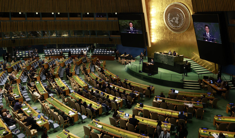 이재명 대통령이 23일(현지시간) 미국 뉴욕 유엔본부 총회장에서 기조연설을 하고 있다. 2025.9.24