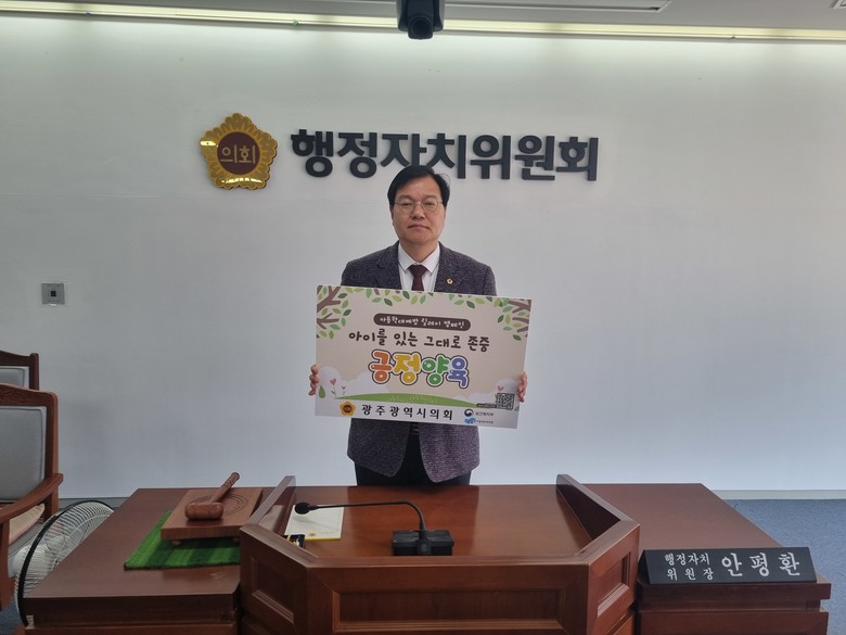 [광주 세계타임즈=손권일 기자] 광주광역시의회 안평환 행정자치위원장(더불어민주당, 북구1)이 3월 6일 ‘아동학대 예방 릴레이 캠페인’에 동참했다.