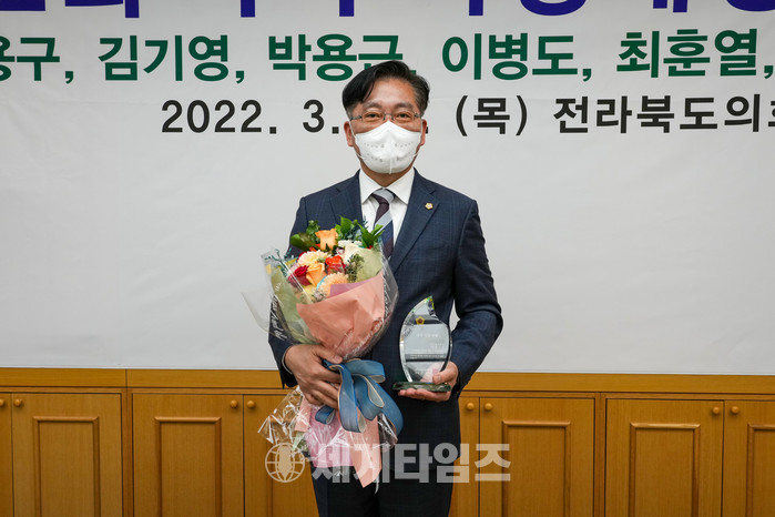 | ▲ 김기영 전북도의원이 수상을 받고 기념촬영을 하고 있다 |