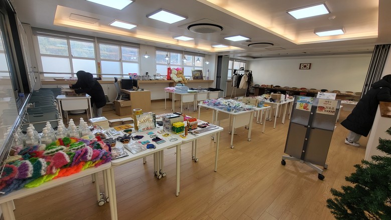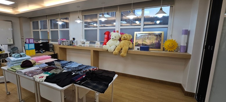바자회 물품은 전부 학생과 교직원의 기부를 통해 이루어진 것이 인상적이다. 윤민주 교장이 직접 만든 수세미, 이주희 교사와 목공동아리에서 제작한 원목 도마, 트레이 등과 학생들이 직접 작아진 옷, 쓰지 않는 학용품, 남는 생필품을 십시일반 모아 바자회를 꾸린 것이다. 2022 하반기 공간혁신사업을 통해 올해 이음교실과 미래교실을 구성한 것을 활용하여 한 켠에는 미니 카페도 열어 음료와 2학년 연극 동아리에서 만든 과자류를 팔기도 하였다.