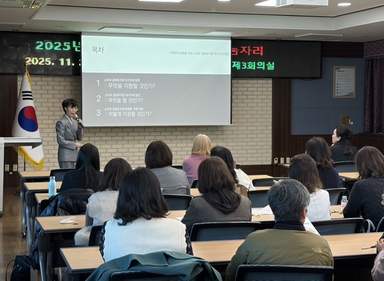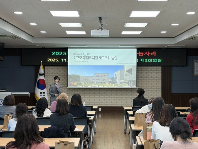 이날 나눔자리에서는 2025 한울타리유치원 업무 담당자외 교원 60명이 참여하여 공주대학교 이성희 교수의 ‘미래유아교육을 위한 소규모 공립유치원 재구조화 방안’특강을 시작으로 서산 대산초등학교병설유치원의 한울타리유치원 통합형 운영 사례를 공유하였다. 또한 2026 한울타리유치원 계획 수립을 위한 운영 방안에 대한 생각나눔도 활발히 이루어졌다.