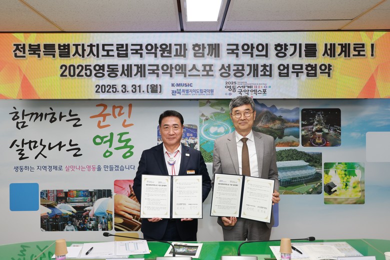 이번 협약식에는 엑스포공동위원장인 정영철 영동군수와 유영대 전북특별자치도립국악원장 등 주요 간부가 참석했다.