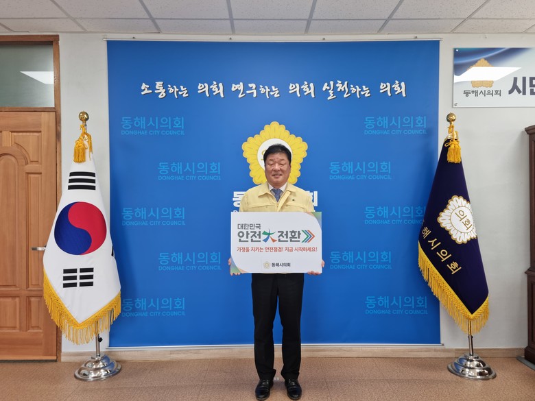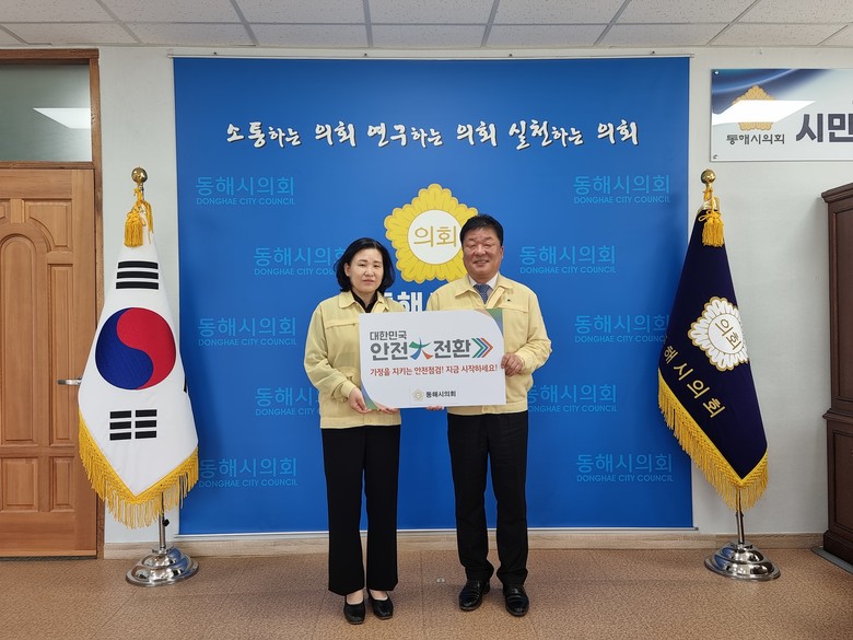 [동해시 세계타임즈=김민석 기자] 동해시의회(의장 이동호)는 가정 내 안전사고를 예방하고 안전점검 문화를 확산하고자 심규언 동해시장에 이어 ‘집중안전점검 기관장 릴레이 캠페인’의 두 번째 주자로 참여하였다.