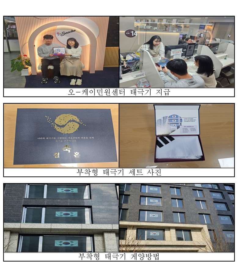 - 국기 게양 가구가 줄어드는 현실 속에서 이번 사업을 통해 국기 게양 문화 확산될 계기가 될 것으로 기대 [서초구 세계타임즈=이장성 기자] 서울 서초구(구청장 전성수)는 혼인이라는 인생의 새로운 출발을 기념하고 생활 속 국기 게양 문화를 확산하기 위해 혼인신고를 한 서초구민에게 태극기 세트를 증정하는 ‘국기선양사업’을 이달부터 시행한다고 밝혔다.