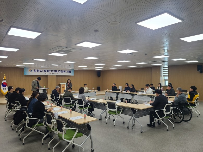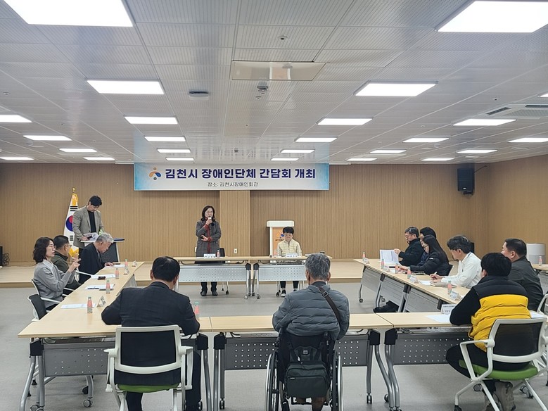 [김천시 세계타임즈=한윤석 기자] 김천시는 지난 3월 6일 김천시장애인회관에서 장애인 복지 증진을 위해 지역 내 장애인단체 대표들과 간담회를 개최했다. 이번 간담회에는 김천시 사회복지과 관계자와 유형별・목적별 장애인단체 대표 및 종사자 등 30여 명이 참석하여 지역 내 장애인 지원방안에 대해 심도 있는 논의를 진행했다.