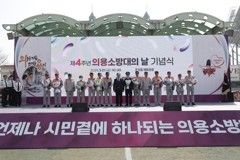 [세종 세계타임즈=이채봉 기자] 세종특별자치시(시장 최민호)가 지난 21일 조치원체육공원에서 ‘제4주년 의용소방대의 날’ 기념식을 개최했다.