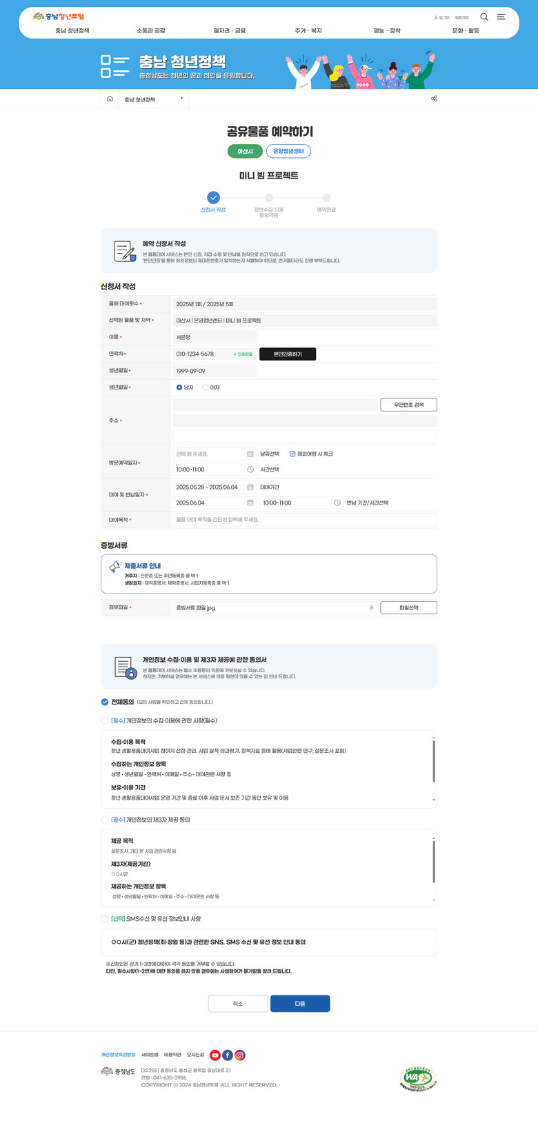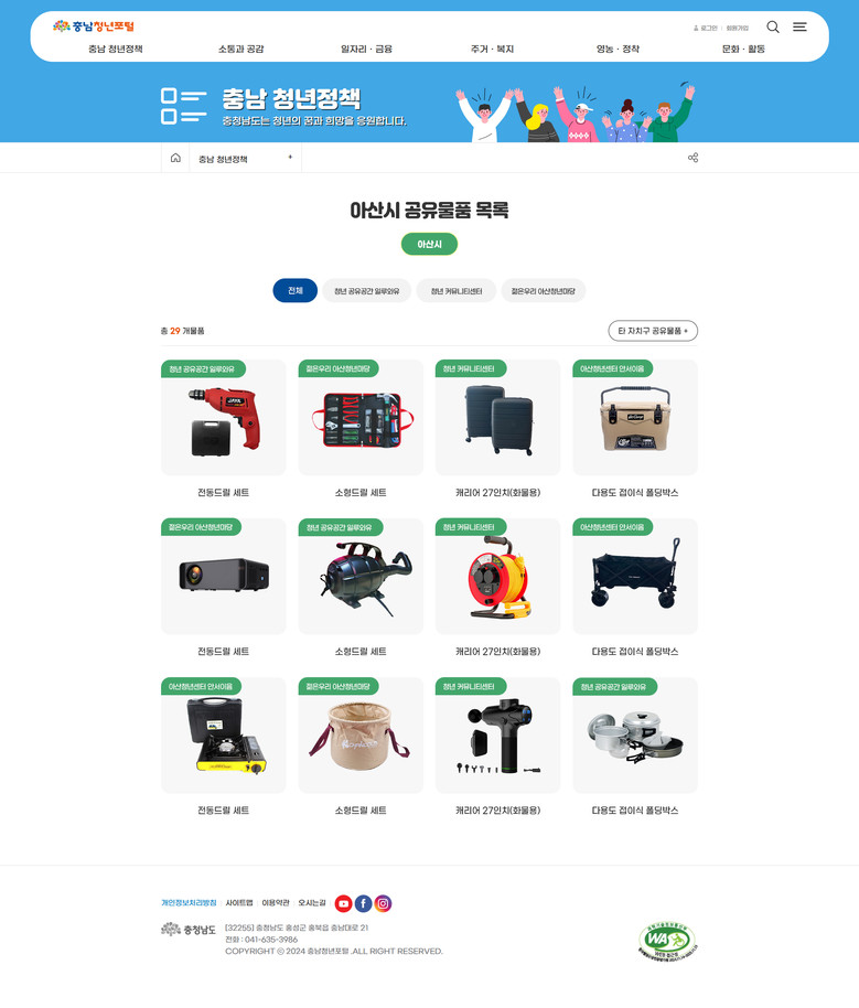 지금까지는 시군 청년센터가 개별 신청을 받아 대여를 진행했으나 이번 충남청년포털 기능 개편으로 대여를 원하는 청년들은 시군 청년센터 내 공구 구비 현황 확인부터 대여 신청까지의 과정을 더 쉽고 편하게 진행할 수 있다.
