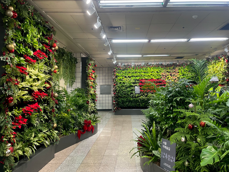 서울시는 기존에 조성된 아래숲길 총 5개소, 1,600㎡를 대상으로, 크리스마스 계절꽃 연출과 겨울철 식물 월동작업을 완료했다. 계절 변화에 따른 실내 정원 연출을 통해 지하철 이용 시민들에게 새로운 볼거리를 제공하는 한편, 체계적인 월동 관리를 통해 정원의 지속가능성도 함께 확보했다.