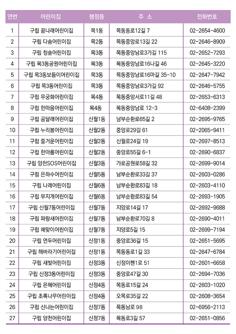 ’양천형 밤샘 긴급돌봄 어린이집‘ 목록