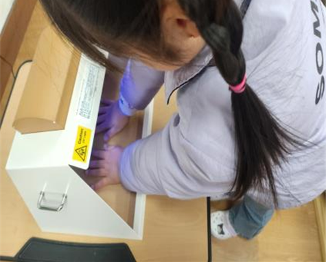 손씻기 체험장비는 손에 형광물질이 포함된 로션을 바르고 손을씻은뒤 오염물질이 제대로 제거되었는지 시각적으로 확인할 수 있어 평소 손씻기 습관을 평가할 수 있는 교육기구이다. 또한 올바른 손씻기 방법을 통한 손씻기 결과와 비교할 수 있어 교육효과가 높다.