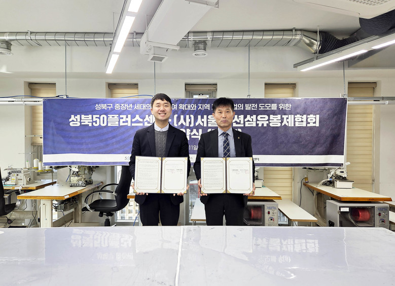 [성북구 세계타임즈=이장성 기자] 성북스마트패션산업센터를 운영하는 서울패션섬유봉제협회(회장 유지용)는 최근 성북50플러스센터(센터장 김일권)와 성북구 중장년 세대의 사회참여 확대와 지역 패션봉제산업의 지속 가능한 발전을 위한 업무협약을 체결했다.