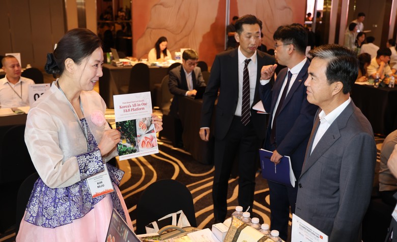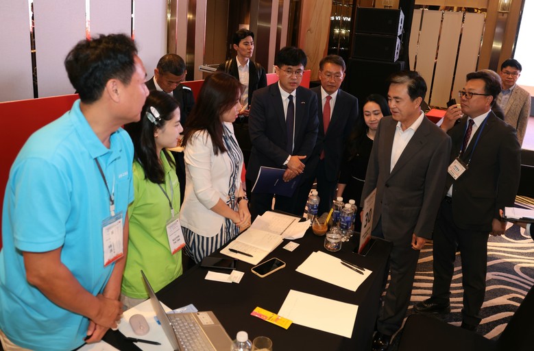 이날 상담회에는 특히 지난 26일부터 베트남 출장 중인 김태흠 지사가 방문, 상담 테이블을 일일이 돌며 바이어들에게 충남 제품의 우수성을 설명하고, 도내 참여 기업인들을 격려했다.