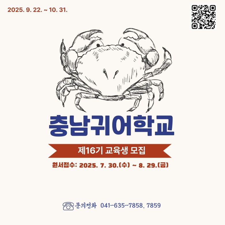 장민규 도 수산자원연구소장은 “올해는 현장 실습 고도화에 대한 교육 수요를 적극 반영해 지역에서 수년간 어업 활동을 한 전문가들을 실습 강사로 대거 초빙했다”라면서 “교육 기간을 9∼10월 서해 대표 어종인 꽃게 성어기에 맞춘 만큼 귀어 희망자는 이번 충남 귀어학교 교육과정에 참여해 생생한 현장 실습의 기회를 잡길 바란다”라고 강조했다.