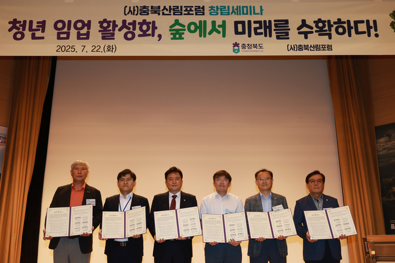 이날 충북도 및 5개 기관은 청년 임업인 육성 및 협력 강화를 위한 업무협약(MOU)을 체결했으며, 청년 대표 선언문 낭독과 함께 ‘청년! 숲을 디자인하다! 청년! 숲을 키우다! 청년이! 산림의 미래다!’ 퍼포먼스를 통해 청년 중심 산림 비전을 선포했다.
