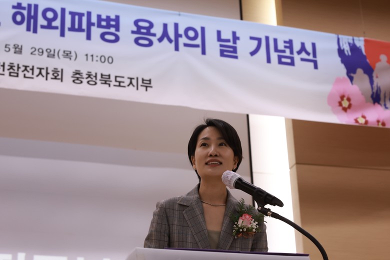 김수민 정무부지사는 ‘이번 기념행사를 통해 우리 도 파병용사분들의 명예와 자긍심을 높이고, 도민 모두가 그 숭고한 정신을 함께 되새기는 계기가 되길 바란다’며, ‘지금까지도 세계 평화 유지와 인도적 지원의 선봉에 서 계신 영웅들의 헌신을 가슴 깊이 새기며, 충북이 대한민국 안보의 중심에 설 수 있도록 국가유공자의 희생에 합당한 예우정책을 지속적으로 발굴하고 지원해 나가겠다’고 말했다.