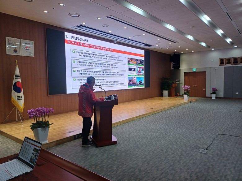 참석자들은 산불 예방 및 산불 진화를 위한 산불방지 종합대책을 보고하고 중점추진계획과 기관별 협조 사항을 논의했다.
