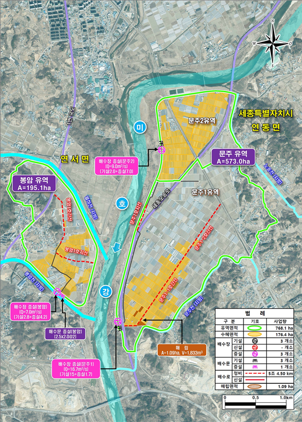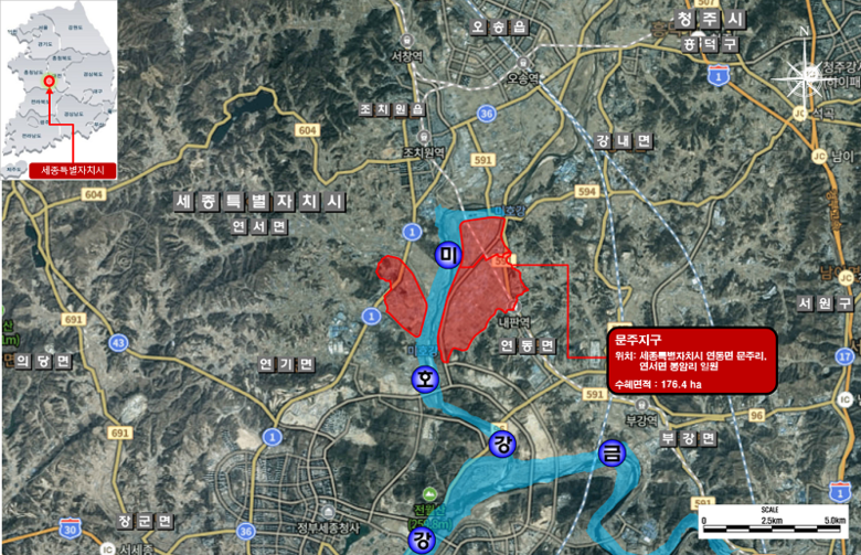 세종특별자치시(시장 최민호)는 5일 연동면 문주유역(문주·송용·예양)과 연서면 봉암유역(봉암)이 농림축산식품부의 배수개선사업 착수지구에 최종 선정됐다고 밝혔다.