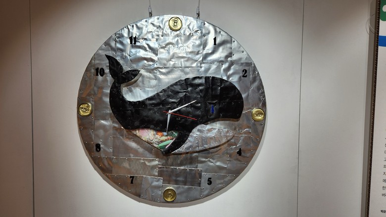 최우수상을 받은 박순서(40) 씨는 캔과 해양쓰레기 등을 활용해 ‘고래가 삼킨 시간’이라는 주제로 시계를 제작해 눈길을 끌었다.