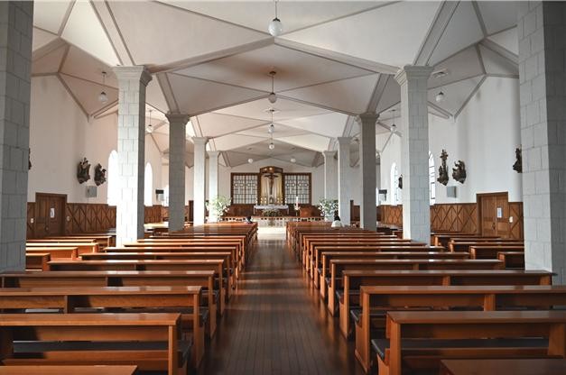 | ▲ 청주 내덕동 주교좌 성당 내부(제단방향) |