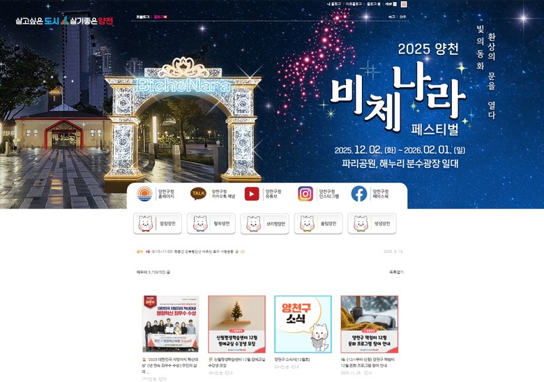 | ▲ 양천구 공식블로그 메인 화면 |