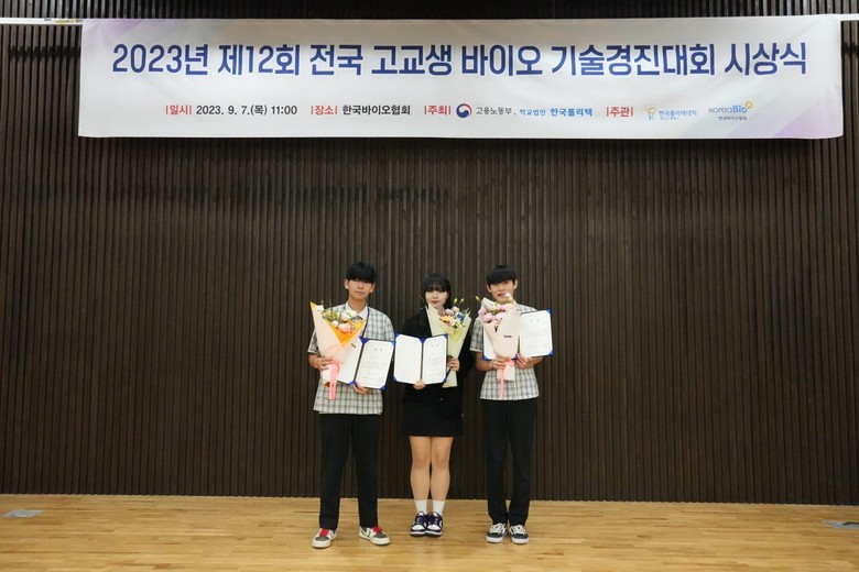 ‘제12회 전국 고교생 바이오기술경진대회’는 바이오기술 탐구 및 바이오 관련 창업아이디어를 주제로 전국 고등학생들이 연구 창의력을 겨루는 대회로, 지난 8월 10일(목) 연구 결과 보고서 발표에 이어 8월 17일(목) 최종 심사 결과를 발표했다.