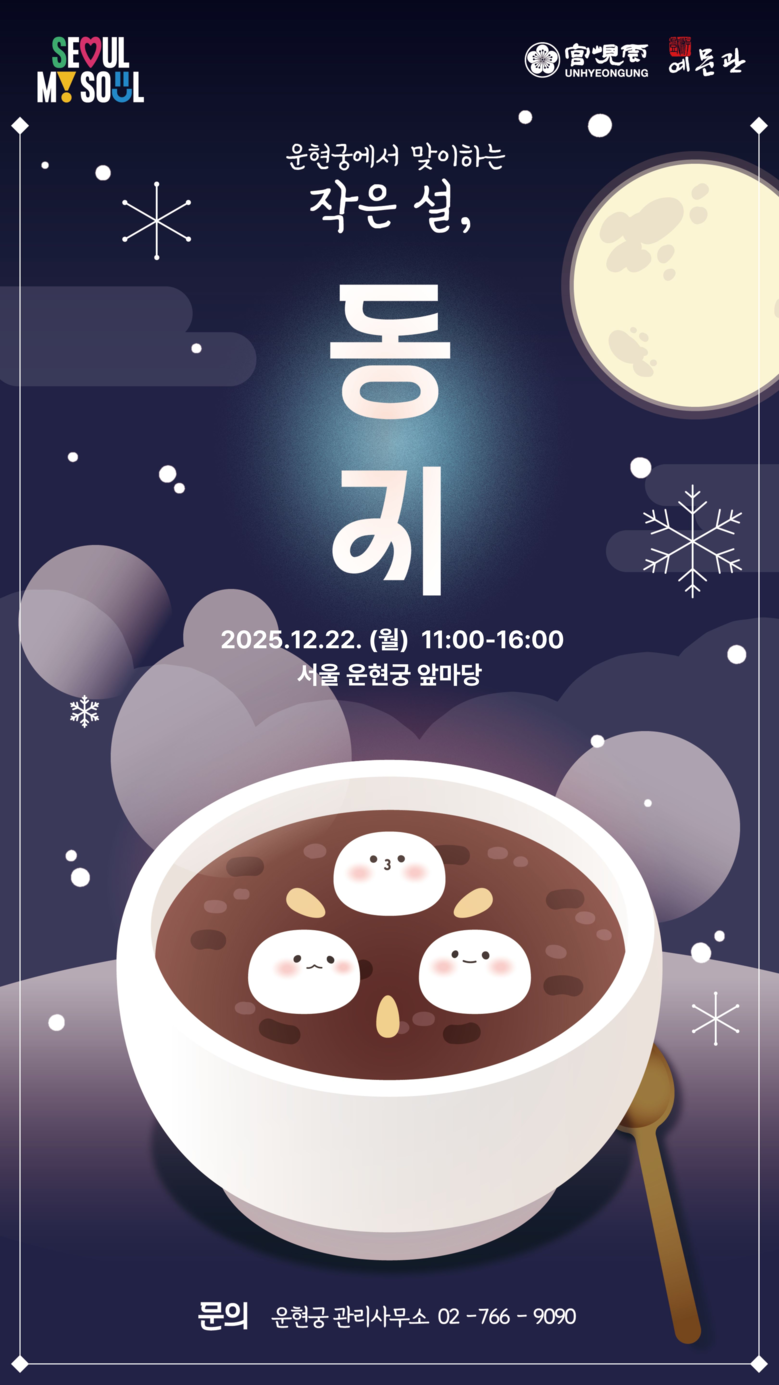 운현궁에서는 동지 당일인 12월 22일(월) <‘2025 운현궁에서 맞이하는 작은 설, 동지>’ 행사를 오전 11시부터 오후 4시까지 진행한다.