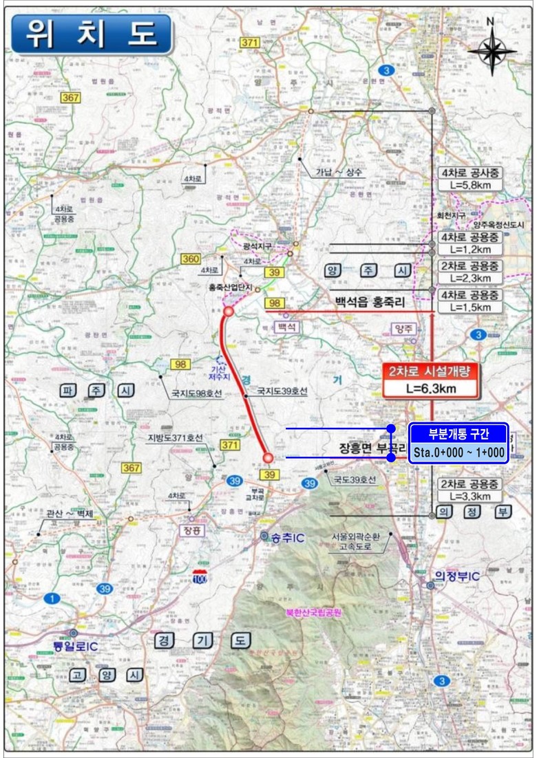 ○ 경기도, 양주 장흥면 부곡리 ~ 석현리 1.0km 구간, 6일부터 차량 통행 시작