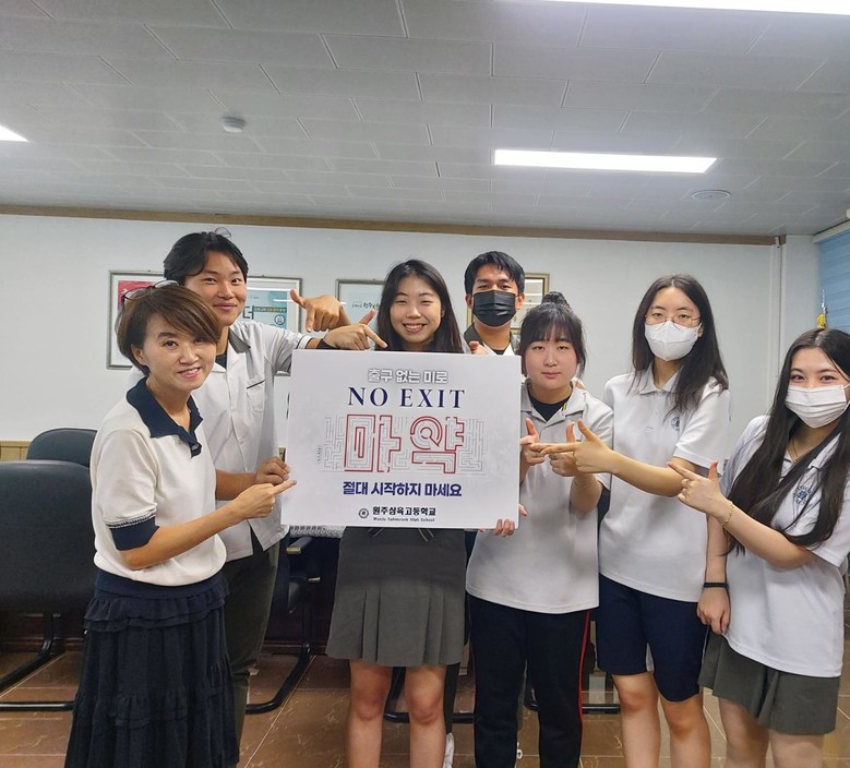 [강원도 세계타임즈=김민석 기자] 원주삼육중고등학교(교장 김인숙)는 7월 13일(목) 학생자치실에서 마약범죄 예방을 위한「NO EXIT」 릴레이 캠페인에 동참했다.