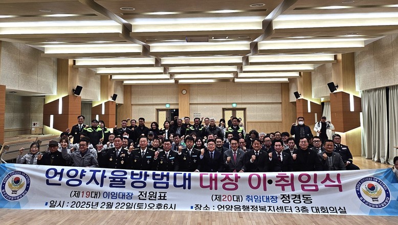 [울주군 세계타임즈=이호근 기자] 울주군 언양자율방범대(대장 정경동)가 지난 22일 언양읍 행정복지센터에서 이순걸 군수와 울주군의회 정우식 부의장 및 시군의원, 서범수 국회의원, 지역사회 기관단체장 및 방범대원 80여명이 참석한 가운데 전원표 대장 이임식과 20대 정경동 대장 취임식을 개최했다.
