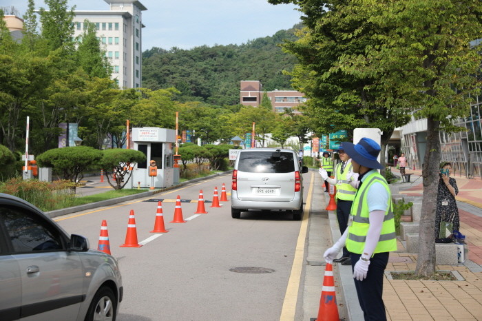 무더운 날씨에도 불구하고 행사가 열리는 체육관의 입구에서부터 주차를 안내하는 자원봉사자들이 질서 있게 차량들을 인도하며 반갑게 맞아 주었다.