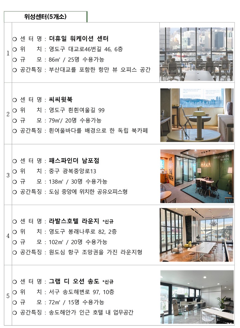 * 추가 위성센터 2곳 : 라발스호텔 라운지(영도구), 그랩 디 오션 송도(서구)