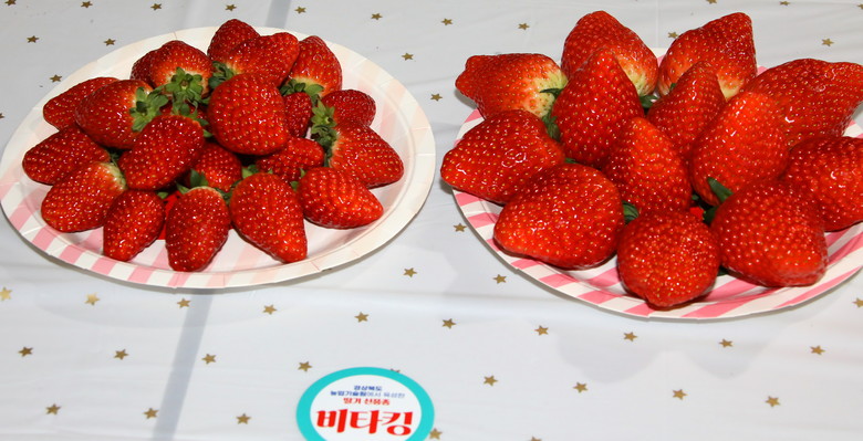 | ▲ 딸기 신품종 '비타킹'(좌-일반형, 우-대과형) |