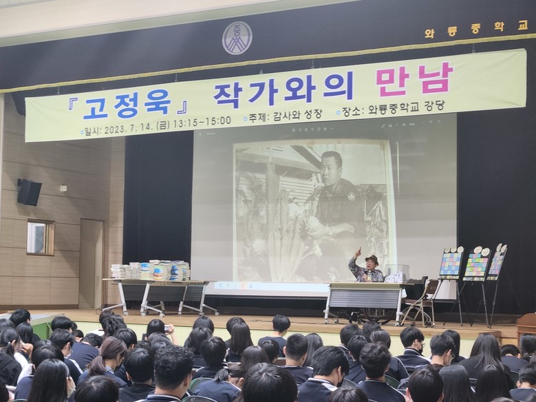 [대구 세계타임즈=한성국 기자] 와룡중학교(교장 박일환)는 2023년 7월 14일(금) 1시 유명 동화작가인 고정욱 작가를 초청해 전교생 및 교직원 400여 명을 대상으로‘감사와 성장’을 주제로 특강을 실시했다고 밝혔다.