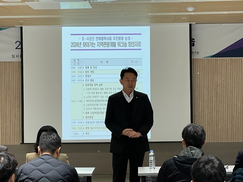 이번 워크숍은 총 50여명의 시.군 관광과장, 개발팀장들이 참석한 가운데, 지역관광 활성화를 위한 도와 시.군간 연계협력사업 추진방향 논의‘를 주제로 관광개발 정책설명, 충북 신광역관광개발 기본구상 사업 공유를 통해 직무역량을 강화하는 것을 목적으로 진행됐다.