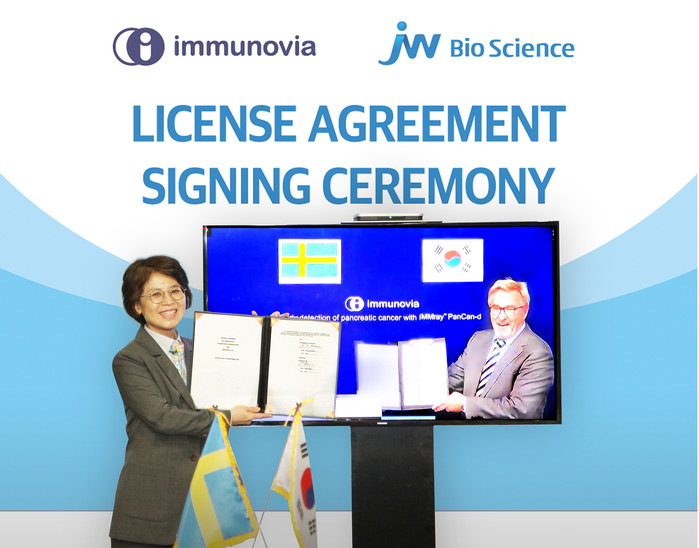이뮤노비아 패트릭 달렌(Patrik Dahlen) 대표는 “이뮤노비아의 독립적인 지적재산권을 확보하기 위한 이번 계약이 체결되어 기쁘게 생각한다”며 “앞으로 JW바이오사이언스와 췌장암 조기 진단서비스 및 키트의 상업화를 위한 개발 협력도 검토해 나가겠다”고 말했다.